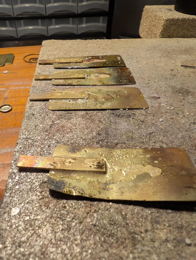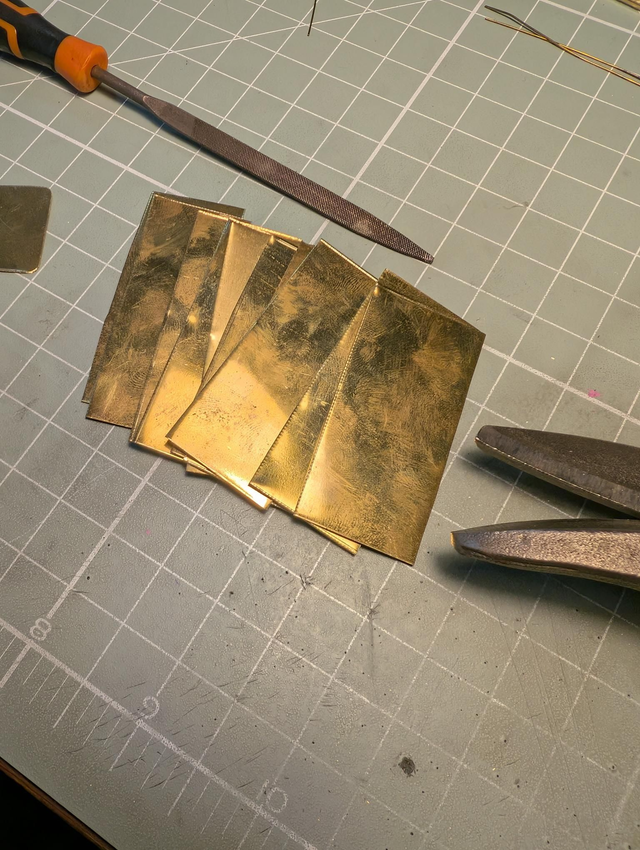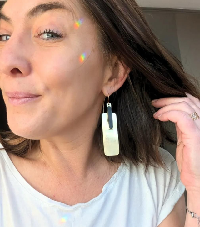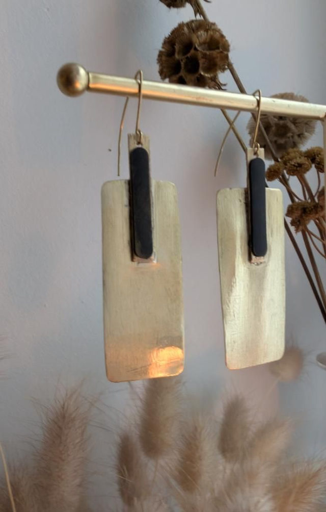 Boucles d'oreilles pendantes en laiton brut brasé, emerisé et poli.